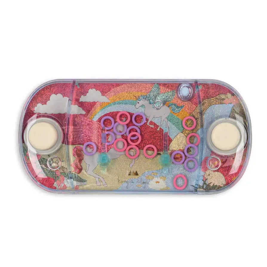 Designed with signature Konges Sløjd backgrounds, this fun water ring game challenges kids to press the buttons and skillfully guide colorful rings onto the floating pegs. It’s perfect for strengthening fine motor skills, enhancing concentration, and offering endless entertainment – whether on the road or for quiet moments at home