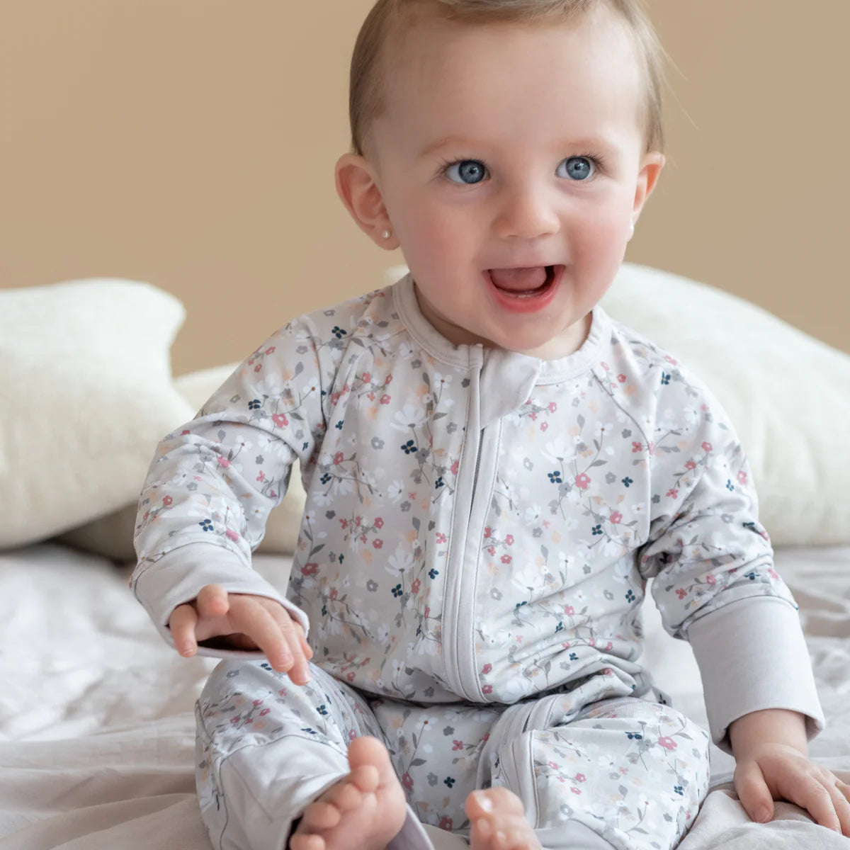 La cremallera bidireccional facilita el cambio de pañal y los pies de quita y pon  agregan calor y comodidad adicional. ¡Lleva su look al siguiente nivel con esta pieza suave como la mantequilla!